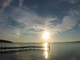Село Б'юдлі знаходиться на західному кінці озера. Місто Гастінґс знаходиться на східному березі озера.