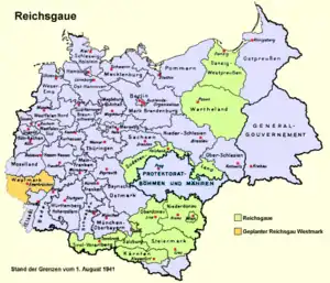 Адміністративний устрій Німеччини станом на 1 серпня 1941 (райхсгау виділені зеленим кольором)