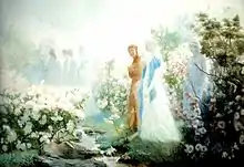 У земному раю провідником Данте стає його кохана Беатріче. Вона сидить на колісниці, в яку запряжено грифона (алегорія тріумфуючої церкви). Беатріче спонукає Данте до покаяння, а потім підносить його, вже просвітленого на небо. Заключна, третя, частина поеми присвячена мандрам Данте небесним раєм.