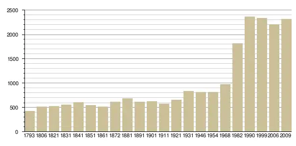 Динаміка населення (base Cassini de l'EHESS pour les nombres retenus jusque 1962[3], base Insee à partir de 1968 (population sans doubles comptes puis population municipale à partir de 2006)[4] · [5] ):