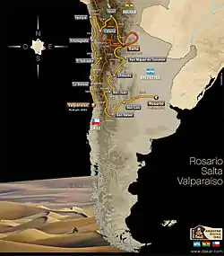 Шостий раз поспіль ралі-рейд пройде в Південній Америці в січні. 5-го числа місяця учасники стартують в аргентинському місті Росаріо і після проходження всієї дистанції ралі, прокладеної по територіях трьох держав — Аргентини, Болівії та Чилі, повинні будуть фінішувати 18 січня в чилійському місті Вальпараїсо. Болівія стане 28-ю країною, що приймає у себе «Ралі Дакар».