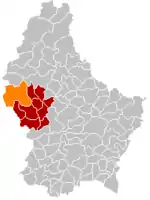 | Комуна Рамбрух (помаранчевий), кантон Реданж (темно-червоний) та округ Дікірх (темно-сірий) на карті Люксембургу | ||||