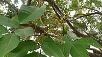 Квітки дрібні, 2,5—5 мм діаметром, актиноморфні, білуваті, жовтуваті або зеленуваті, оцвітина сформована лише 4-7 чашолистками, пелюстки відсутні, або наявні 4 редуковані. Квітки зібрані у термінальні суцвіття. Рослини можуть бути як дводомними, так і однодомними чоловічими. У чоловічих квіток розвиваються лише тичинки[1].