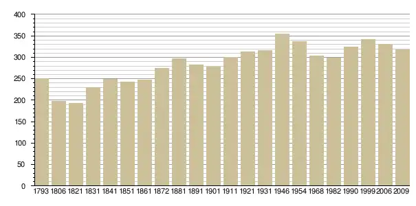 Динаміка населення (base Cassini de l'EHESS pour les nombres retenus jusque 1962[3], base Insee à partir de 1968 (population sans doubles comptes puis population municipale à partir de 2006)[4] · [5] ):