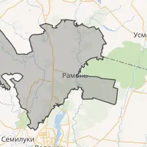 Рамонский район з адміністративним центром смт Рамонь, розташований в північній лісостеповій частині Воронезької області, за 37 км від Воронежа. Район межує на півночі з Липецькою областю, зі сходу — з Новоусманським, із заходу — з Семилуцьким районами Воронезької області, з півдня — з м Воронежем. Площа району — 1300 км².