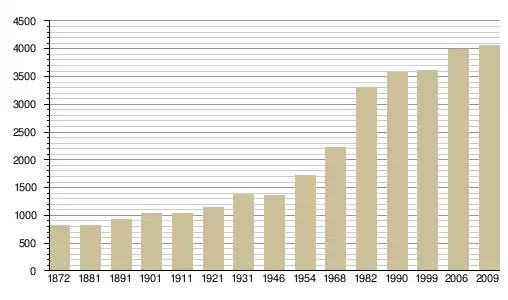 Динаміка населення (base Cassini de l'EHESS pour les nombres retenus jusque 1962[3], base Insee à partir de 1968 (population sans doubles comptes puis population municipale à partir de 2006)[4] · [5] ):
