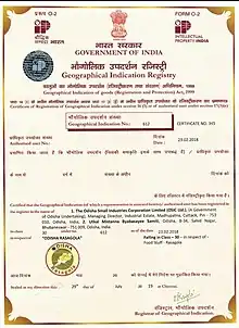- Certificate of Registration of Geographical Indication under section 16 (1)-or of authotised user under section 17(3)(e). Intellectual Property India. 14 листопада 2017. Процитовано 15 листопада 2017.