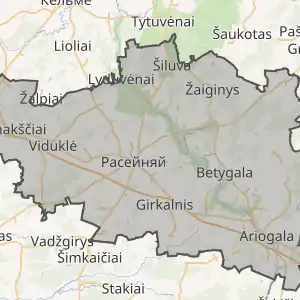 - Бетігальське (лит. Betygalos seniūnija; адм. центр: Бетігала)