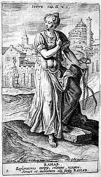 Ісус Навин перед тим як перейти Йордан послав двох розвідників у Єрихон. Розвідники заночували у Рахав. Про це стало відомо цареві Єрихону і він послав людей до неї, щоб вона видала ізраїльських розвідників. Коли солдати з міста прийшли до неї додому, щоб заарештувати цих двох шпигунів, Рахав сховалв їх на терасі у бадиллі льону. Людям царя Рахав підтверджує, що в неї були двоє чоловіків, проте не знає хто вони і сказала людям, що ті двоє вже покинули місто, та якщо люди поспішать, то ще наздоженуть цих двох. Люди кинулися за ними навздогін шляхом до Йордану, до броду. У той час, Рахав розповідає розвідникам про жах який охопив мешканців Єрихону перед ізраїльтянами, та про обіцяну їм Богом землю. За те, що вона заховала їх, Рахав взяла клятву з розвідників залишити її і родичів живими, а сама обіцяла не розголошувати про напад війська Ісуса Навина[2]. Розвідники сказали помітити їй вікно у будинку червоною мотузкою. Все решта населення Єрихону, окрім родини Рахав, було поголовно перебито[3].
