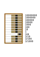 Спочатку пересуваємо вліво 5 кісточок на дротику одиниць, одержимо число 128,75. Далі ми повинні пересунути вліво 4 кісточки «після коми», але їх там тільки 3. Пересуваємо ці 3 кісточки вліво до 7 кісточок, які вже там є. Замінюємо 10 кісточок на 1 кісточку вищого розряду одиниць. І пересуваємо вліво ще 1 кісточку «після коми». Одержимо число 129,15. Нарешті подібно додаємо ще 6 кісточок нижчого розряду і одержуємо результат 129,21.
