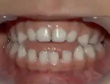 Одночасно з розм'якшенням кісток черепа збільшуються лобні та тім'яні горби, які надають голові квадратної форми, рідше — сідницеподібної. Зуби з'являються пізно, відзначається схильність до карієсу, що зумовлюється вадами зубної емалі.