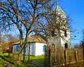 | дубова, побудована коло старої в 1728 році, що була пограбована татарами в 1728, і що священиком при ній служив Давид, посвячений в 1733 році в Переяславі. |