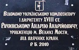 13 червня 2011 року в місті Великі Мости Сокальського району Львівської області на фасаді Великомостівської дитячої школи мистецтв відкрито пам'ятну меморіальну дошку композитору і диригенту Рачинському Андрію Андрійовичу.