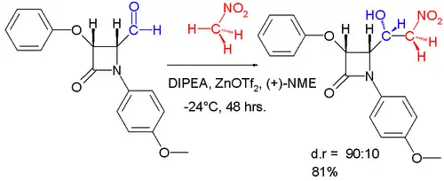 Більш складний приклад діастереоселективної реакції Анрі показано нижче.[1]