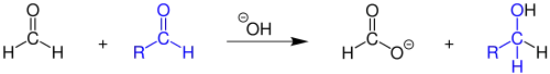 Взаємодія між різними альдегідами, одним з яких є формальдегід, призводить до окиснення саме формальдегіду: