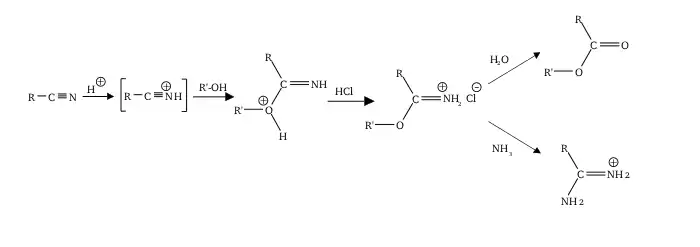 - A. Pinner (1883). Ueber die Umwandlung der Nitrile in Imide. Berichte der deutschen chemischen Gesellschaft 16 (2): 1643–1655. doi:10.1002/cber.18830160235.