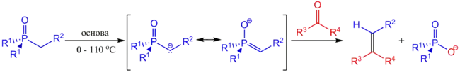 Електроноакцепторна група в альфа-положенні до фосфонату забезпечує заключне елімінування. За відсутності електроноакцепторної групи продуктом реакції є α-гідроксифосфонати[4]. Однак такі α-гідроксифосфонати можуть бути перетворені на алкени з допомогою реакції з диізопропілкарбодиімідом[5].