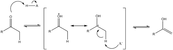 Прикладом є реакція кетонно-енольної таутомеризації: