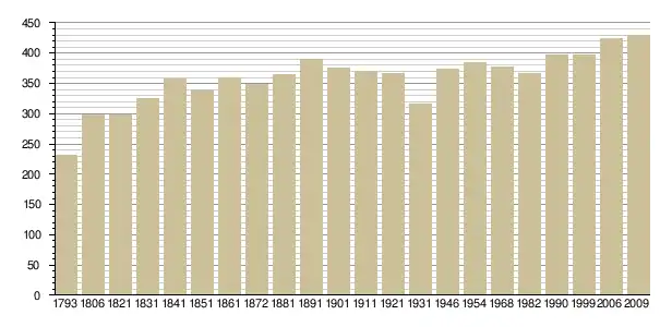 Динаміка населення (base Cassini de l'EHESS pour les nombres retenus jusque 1962[3], base Insee à partir de 1968 (population sans doubles comptes puis population municipale à partir de 2006)[4] · [5] ):