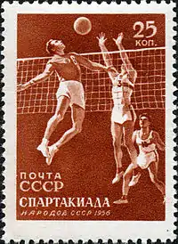 Поштова марка СРСР, посвячена I Спартакіаді народів СРСР (1956, 25 копійок)