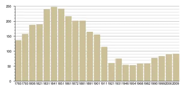 Динаміка населення (Baratier, Duby & Hildesheimer pour l’Ancien Régime ; Insee[3], EHESS[4] pour les chiffres issus des recensements légaux ):