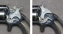 - Револьверу не потрібний окремий запобіжник — якщо курок не зведений, унаслідок випадкового падіння, удару тощо, револьвер не вистрілить завдяки конструкції ударно-спускового механізму. В останні десятиріччя подібні рішення вживають і в пістолетах.