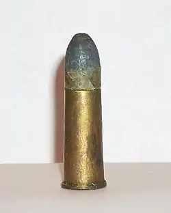 - Патрон — з фланцевою латунною гільзою, оболонковою кулею і бездимним порохом.