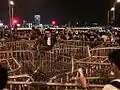 В 10:20 вечора, протестувальники сіли на Перформенс Артс Авеню, намагаючись запобігти проникненню поліцейських машин. Але автомобілі все ж увірвалися, і протестувальники негайно кинулися на фронт в бій, щоб зупинити їх. Поліція сформувала ланцюг, щоб дозволити автомобілям проїхати. Серед цього хаосу поліція підняла жовтий прапор і протестувальники підняли руки у відповідь.