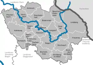 Район складається з 3 міст (нім. Städte), 3 торговельних громад (нім. Märkte) та 18 громад (нім. Gemeinden):