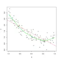 Регре́сія (англ. regression, нім. Regression f, рос. регрессия) — форма зв'язку між випадковими величинами. Закон зміни математичного сподівання однієї випадкової величини залежно від значень іншої. Розрізняють прямолінійну, криволінійну, ортогональну, параболічну та інші регресії, а також лінію і площину регресії.