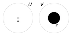 Також у цьому випадку кажуть, що точка і замкнута множина розрізняються за допомогою відкритих множин .