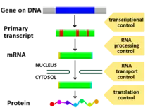 Після того як ДНК була транскрибована в мРНК, ці молекули також є мішенню багатьох регуляційних механізмів які можуть підсилювати або пригнічувати трансляцію білків за їх участю. В клітинах це всі процеси, які передують трансляції мРНК, а саме кепування, сплайсинг та поліаденилювання а також транспорт мРНК до місця трансляції.
