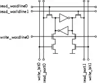 А регістровий файл в целочисельному арифметико-логічному пристрою мікропроцесора MIPS R8000, що має 9 портів для читання та 4 порти для запису, 32 64-бітних регістра має такі розміри, що добре помітний неозброєним оком з відстані 30 см[джерело?].