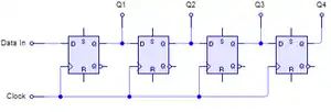У цифровій електроніці, регістр зсуву послідовний каскад тригерів, що мають один і той самий тактовий сигнал, в якому вихід кожного тригера сполучений з входом даних наступного тригера у каскаді, утворюючи ланцюг який зсуває на одну позицію бітову мапу що в ньому зберігається, зсуваючи на вході дані і зсуваючи на виході останній біт в масиві, при кожній подачі тактового сигналу.