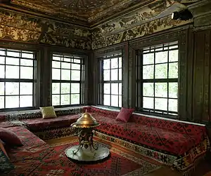 З архітектурної точки зору стиль резиденції князя Милоша є перехідним етапом від балканської архітектурної традиції до поступового розвитку елементів центрально-європейської архітектури. Європейський вплив відчувається в класичному строгому порталі, окремих архітектурних деталях, а також у вільному парковому просторі навколо будівлі. В той час як багато розписані склепіння стелі, стін та ніш, організація внутрішнього простору, внутрішнє оздоблення та меблі належать до османської житлової культури. Кожен поверх має великий зал посередині, сім кімнат, розміщені навколо, та чотири допоміжні кімнати між ними. Головний вхід виходить в сад, тоді як з боків є менші бічні входи. Перший поверх мав утилітарний характер і використовувався для розміщення слуг, охорони та чиновників князя Милоша. Була також канцелярія, з якої велося листування. Верхня частина мала винятково житлову функцію.[2]