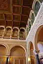 Серед головних приміщень палацу — великий, з масивними колонами, вестибюль на першому поверсі, та Мармурова, Червона, Зелена і Блакитна зали на другому. Своєю красою вражають навіть коридори, вистелені мозаїкою з мармуру, зі стелями у формі куполів.