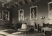 Від початку приміщення було прикрашене портретами австрійських монархів від часу входження Буковини до складу Габсбурзької імперії. Ці полотна були замовлені Міністерством культів і освіти Австрійської імперії буковинському живописцю Епамінандосу Бучевському. Після його смерті, роботу над картинною галереєю продовжив Євген Максимович[16].