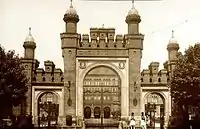 Парадна брама є яскравим відображенням всього архітектурного ансамблю. У її поєднані мотиви західного середньовіччя та екзотика східної архітектури.