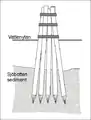 Існують також рейдові чальниці з однієї палі (meda), трьох (mazzetto), п'яти (ceppo), з десятка (damona).