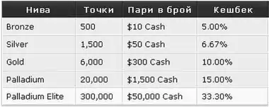 Пропозиції кешбеку — це, як правило, VIP-програми різних закладів. Вони вимагають покрити певну кількість балів, щоб досягти бажаного рівня VIP та відповідних йому бонусів. У наведеній таблиці є зразки VIP-рівнів, а також бали, необхідні для них.