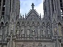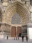 На висоті 50 метрів над землею, на східному фасаді, знаходиться «Галерея королів», в центрі якої зображено хрещення Хлодвіга. Попід нею зображено битву Давида з Голіафом та, відразу понад великим порталом, божественну коронацію Діви Марії.