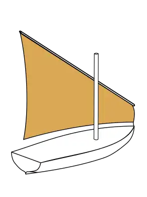 - Люгерний рейок — розташований під невеликим кутом до щогли, з помітною несиметричністю