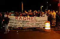 16 березня 2003 року Рейчел разом з шістьма іншими правозахисниками (трьома громадянами Великої Британії і трьома американцями) намагалися перешкодити ізраїльській операції знищення броньованими бульдозерами в місті Рафах приватних будинків і посадок поблизу кордону між Газою та Єгиптом. За даними ізраїльської армії знищення будинків та посадок мало б зашкодити нелегальному постачанню зброї та вибухівки через тунелі під кордоном.