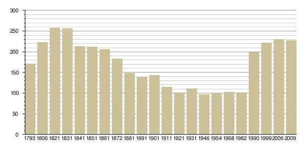 Динаміка населення (base Cassini de l'EHESS pour les nombres retenus jusque 1962[3], base Insee à partir de 1968 (population sans doubles comptes puis population municipale à partir de 2006)[4] · [5] ):