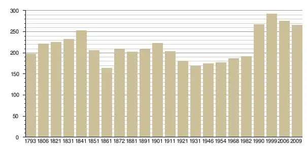 Динаміка населення (base Cassini de l'EHESS pour les nombres retenus jusque 1962[3], base Insee à partir de 1968 (population sans doubles comptes puis population municipale à partir de 2006)[4] · [5] ):
