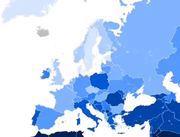 Європейські країни зазнали зниження кількості церков та відвідування церкви.[3] Прикладом цієї тенденції є Швеція, коли церква Швеції, що була державною церквою до 2000 р., стверджувала, що її паства складає 82,9% населення Швеції в 2000 році. Опитування показали, що показник зменшився до 72,9% до 2008 року[4] та до 57,7% до 2018 року.[5] Більше того, в опитуванні Євробарометра 2005 року 23%[6] населення Швеції заявили, що вони не вірять в те, що існує якийсь дух, Бог чи певна життєва сила, та в опитуванні Євробарометра 2010 року 34% сказали те саме.