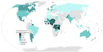 Іслам є державною або панівною релігією (більше 80 % населення) в Алжирі, Гамбії, Гвінеї, Джибуті, Єгипті, Коморських Островах, Лівії, Мавританії, Малі, Марокко, Нігері, Сенегалі, Сомалі, Судані, Тунісі[14]. Більше половини населення сповідує іслам також в Буркіна-Фасо (61,6 %), Нігерії (50,8 %), Сьєрра-Леоне (78,0 %), Чаді (55,3 %)[14].