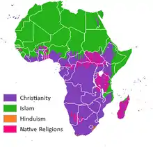 Найсильнішого викоренення місцеві культи зазнали з боку ісламу на півночі континенту, Африканському Розі та на Коморських і Сейшельських островах[6]. Африканські традиційні вірування лягли в основу містичних уявлень серед нащадків чорношкірих рабів у Північній Америці (вуду) та Бразилії (кандомбле).