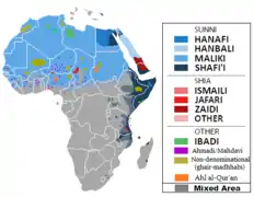 В ісламі виділяють три головні гілки: сунізм, шиїзм і хариджизм. Всі вони представлені на африканському континенті.