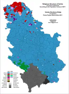 Сербія була традиційно християнською країною з часів християнізації сербів Климентом Охридським і Святим Наумом в 9-му столітті. Домінуюча релігія православ'я (Сербська православна церква) . Під час османського панування на Балканах, сунітський іслам утвердився на території Сербії, в основному в південному регіоні Рашка, Прешевській долині та Косово і Метохії. Католицька церква має коріння в країні з моменту перебування угорців у Воєводині (головним чином у північній частині провінції), тоді як протестантизм прибув у 18-19 століттях із заселенням словаків у Воєводині.